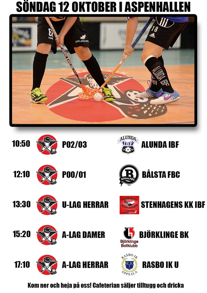 Full aktivitet med många matcher för våra lag! Lördag 11/10 F02/03 11.20 Almunge IK - Tierp IBK Almunge Sporthall Spelade en bra match och det blev tyvärr en förlust P04 12.30 Almunge IK - Tierp IBK Almunge Sporthall Enligt rapport från en nöjd Coach Tobias gjorde killarna i laget en bra match och han ser fram emot fortsättningen. Vinst blev det för dom. F03/04 15.15 Lamadjurets AIBC - Tierp IBK Öresundsbro Sporthall Rapporterna säger att tjejerna gjorde en super match och vann. Söndag 12/11 P02/03 10.50 Tierp IBK - Alunda IBF 4-0 Spelade en kanon match och laget spelade verkligen för varandra. Målvakten Pontus spelade super i dom två perioder han stod och Casper spelade lika bra den sista perioden. P00/01 Tierp IBK - FBC Bålsta 14-1 I denna matchen va det inget snack, grabbarna i TIBK förde spelet från början till slut, Bålsta gjorde några försök, men lyckades inte få till det. U-lag Herrar Tierp IBK - Stenhagens KK U 4-6 Spelar upp sig mer och mer för varje match som går. Gör en mycket bra match och killarna ska va nöjda med sitt spel. A-lag Damer Tierp IBK - Björklinge BK 7-8 Oj oj. Vilken match, vilken kämpar insats från samtliga spelare. Blev spännande ända fram till slutet. Ska bli spännande att följa lagets utveckling under säsong. A-lag Herrar Tierp IBK - Rasbo IK U 9-6 Killarna i A-laget fortsätter att imponera och nyförvärven fortsätter att producera mål. Kommer bli mycket spännande att följa laget. Nu får laget en dags villa innan det blir DM-match mot div 7 laget Wåhla på tisdag. Ännu en super helg för Tierp IBK´s lag och fortsättning följer. /Mr Big Tierp IBK 13 okt 2014 0kommentarer